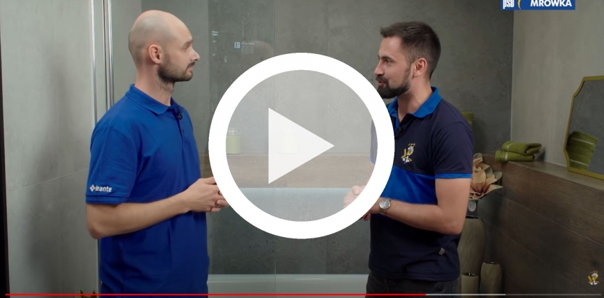 "Poznajecie? Mrówka w Niepołomicach. Tym razem jesteśmy tu, by zobaczyć gotowe pomysły na łazienkę. W dzisiejszym odcinku spytamy eksperta firmy Deante jak zaprojektować niewielkie pomieszczenie – by było ono praktyczne, gustowne i trendy.